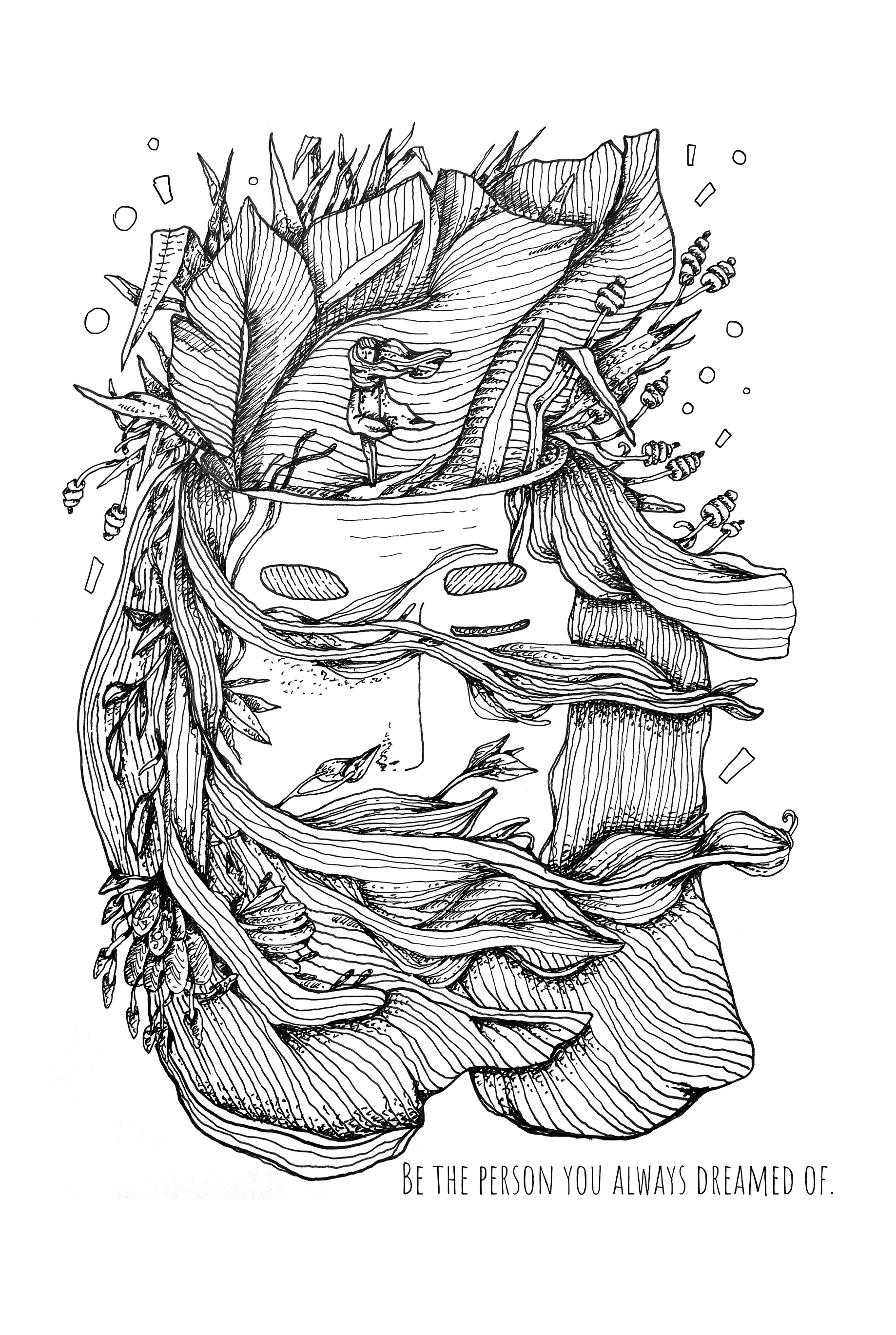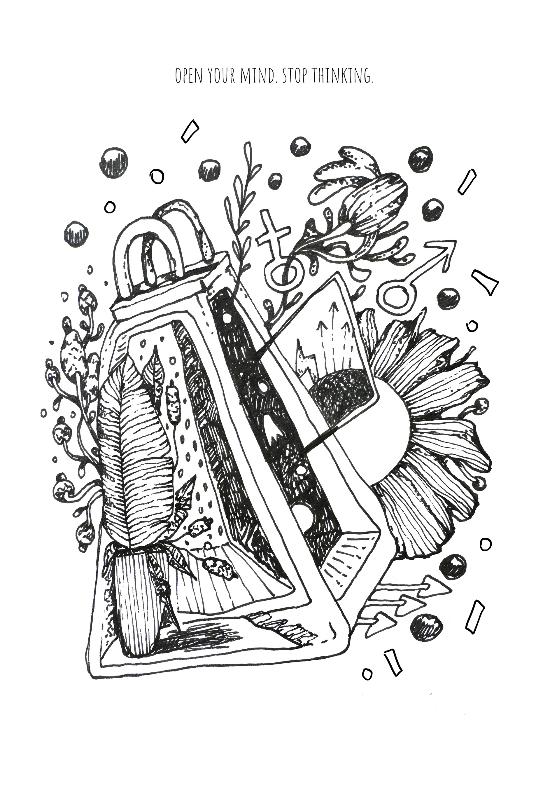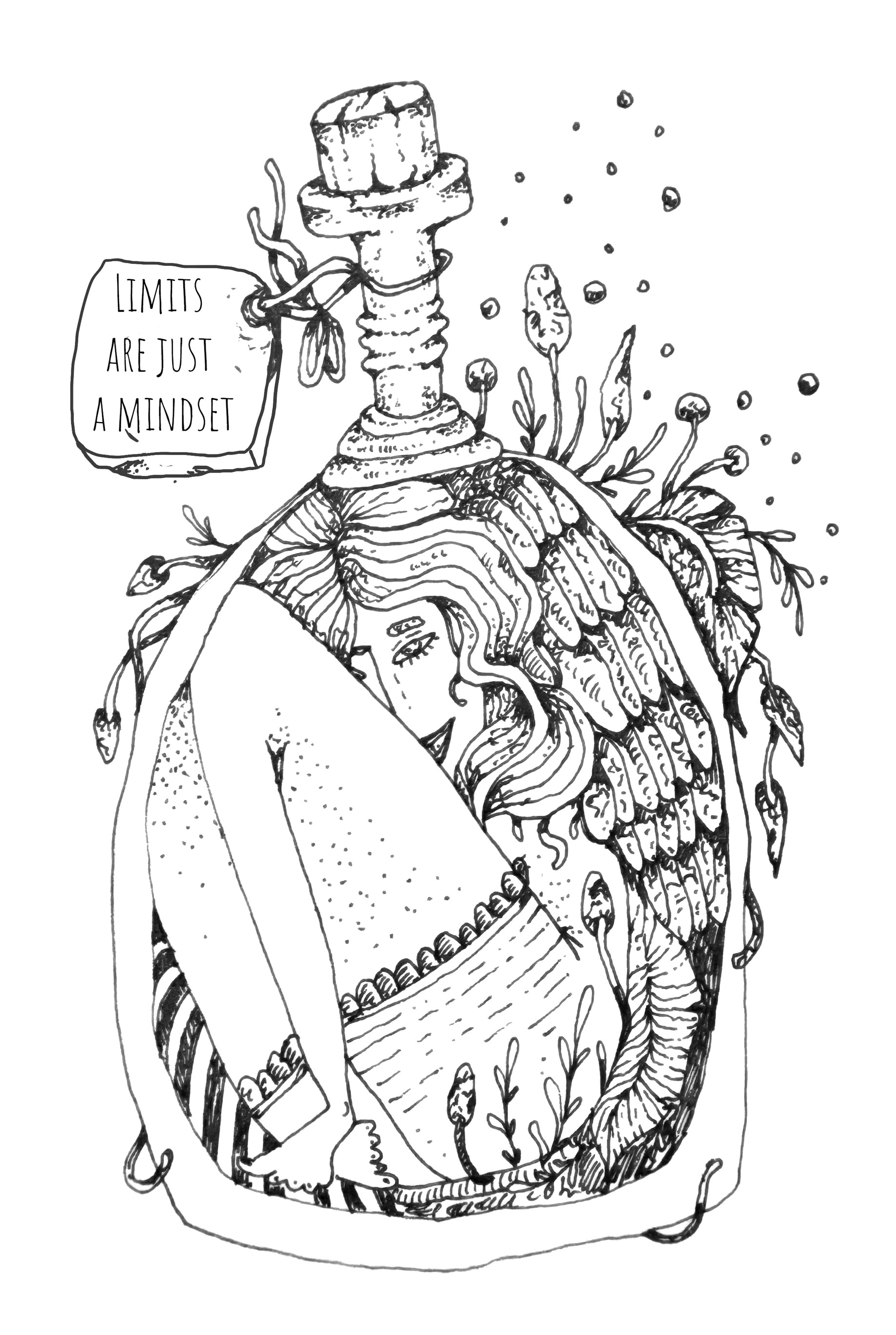 Each spread features original hand-drawn black-and-white illustrations, created slowly and intentionally. These drawings are not instructions, but invitations — visual spaces where you can pause, focus your attention, and place your thoughts on paper.