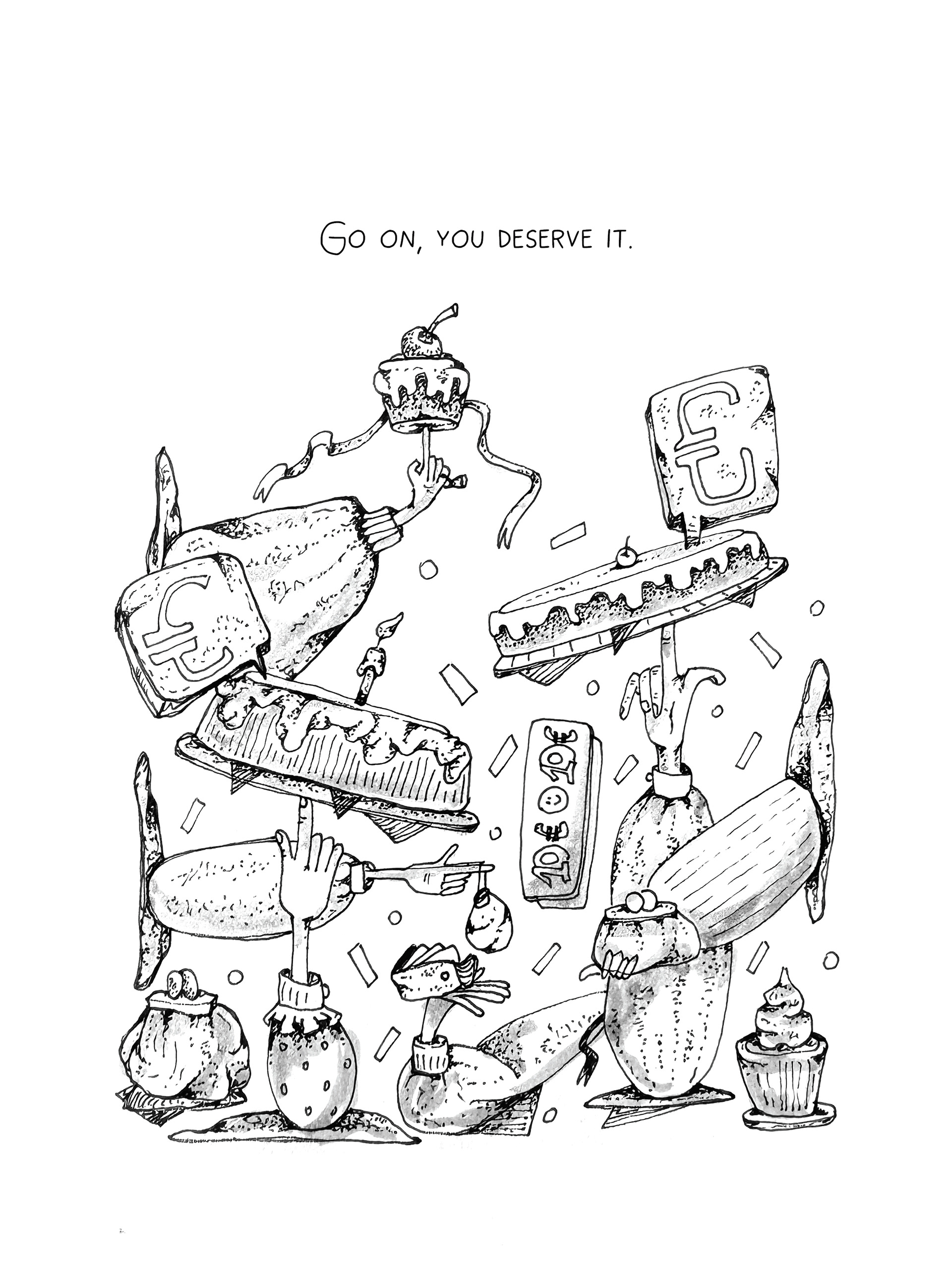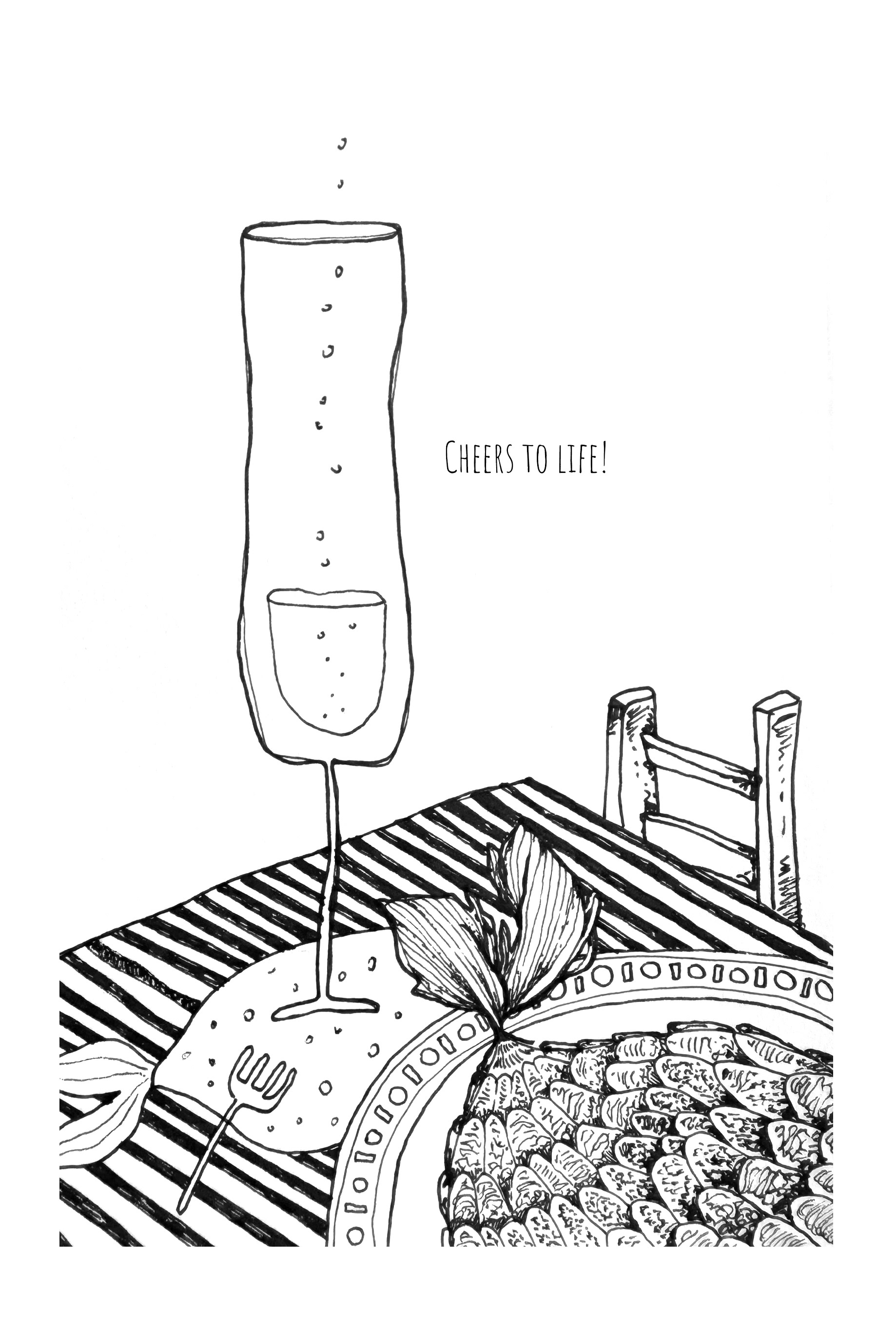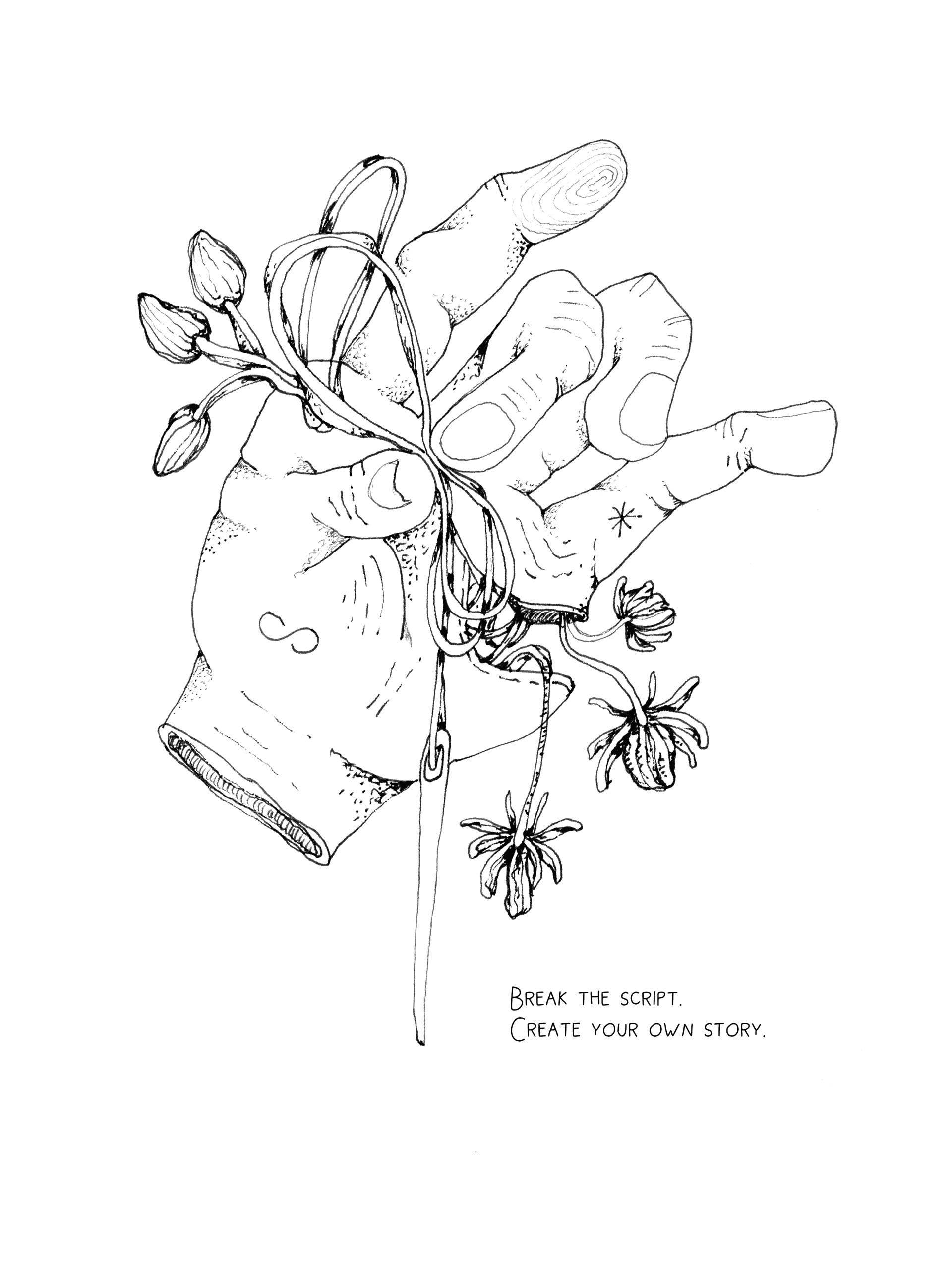 • Original hand-drawn black-and-white illustrations